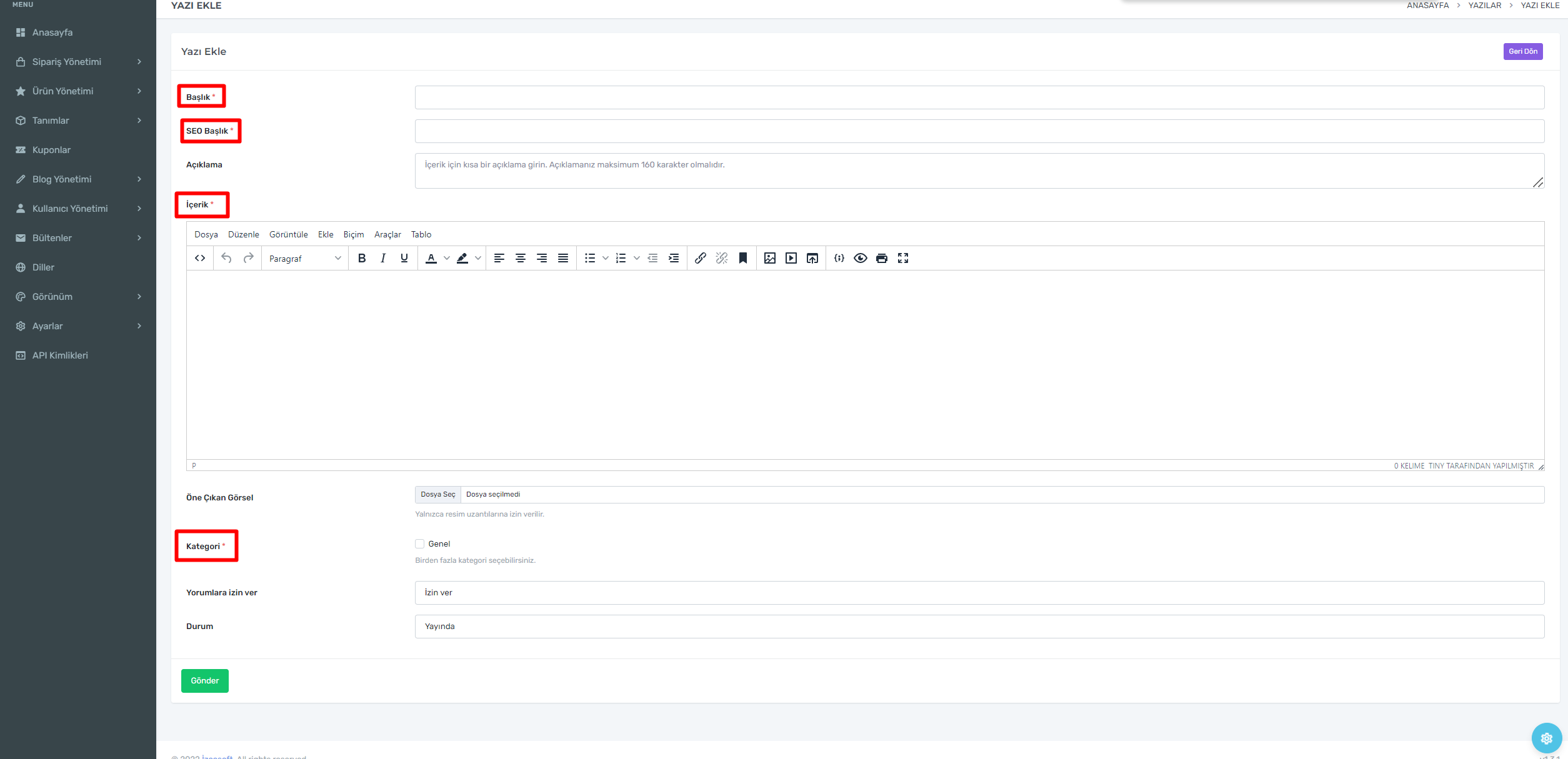 E-Ticaret sitenize blog yazınızı eklemek için blog yönetimi yazılar yeni ekle adımlarını takip etmelisiniz.