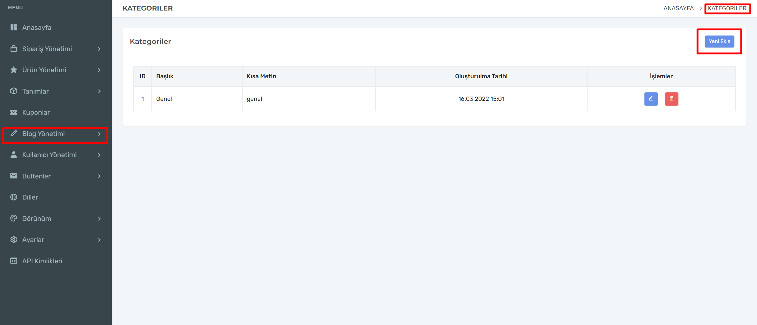 E-Ticaret Yazılımı Blog Yönetimi