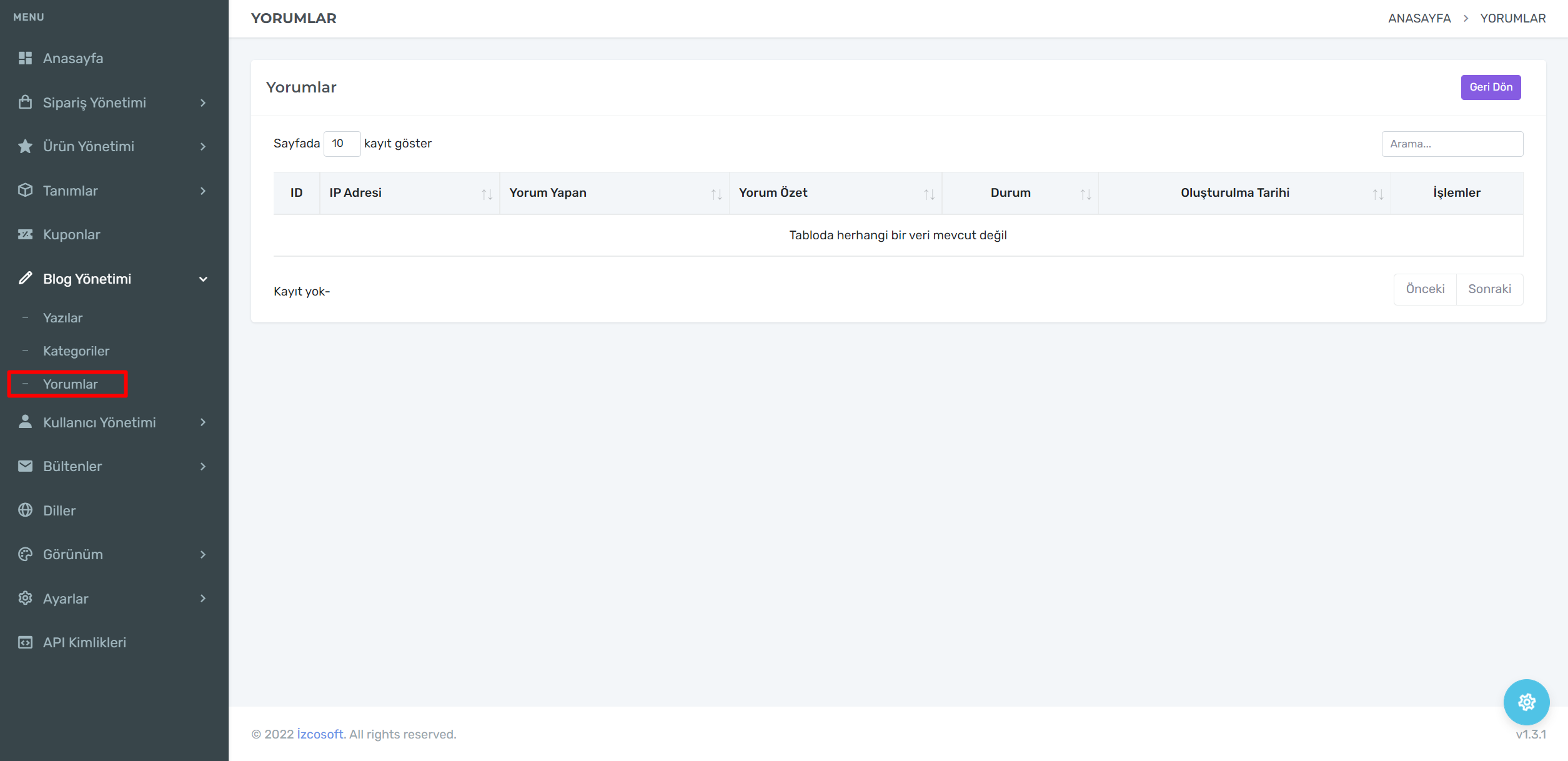 Sayfanızda paylaşmış olduğunuz blog yazılarınıza yapılan yorumları görebileceğiniz alandır.