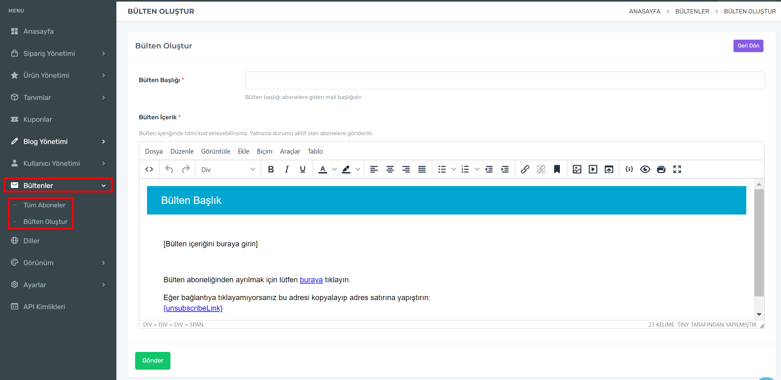Bülten Oluştur: