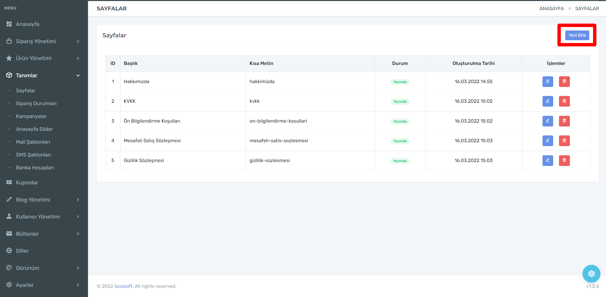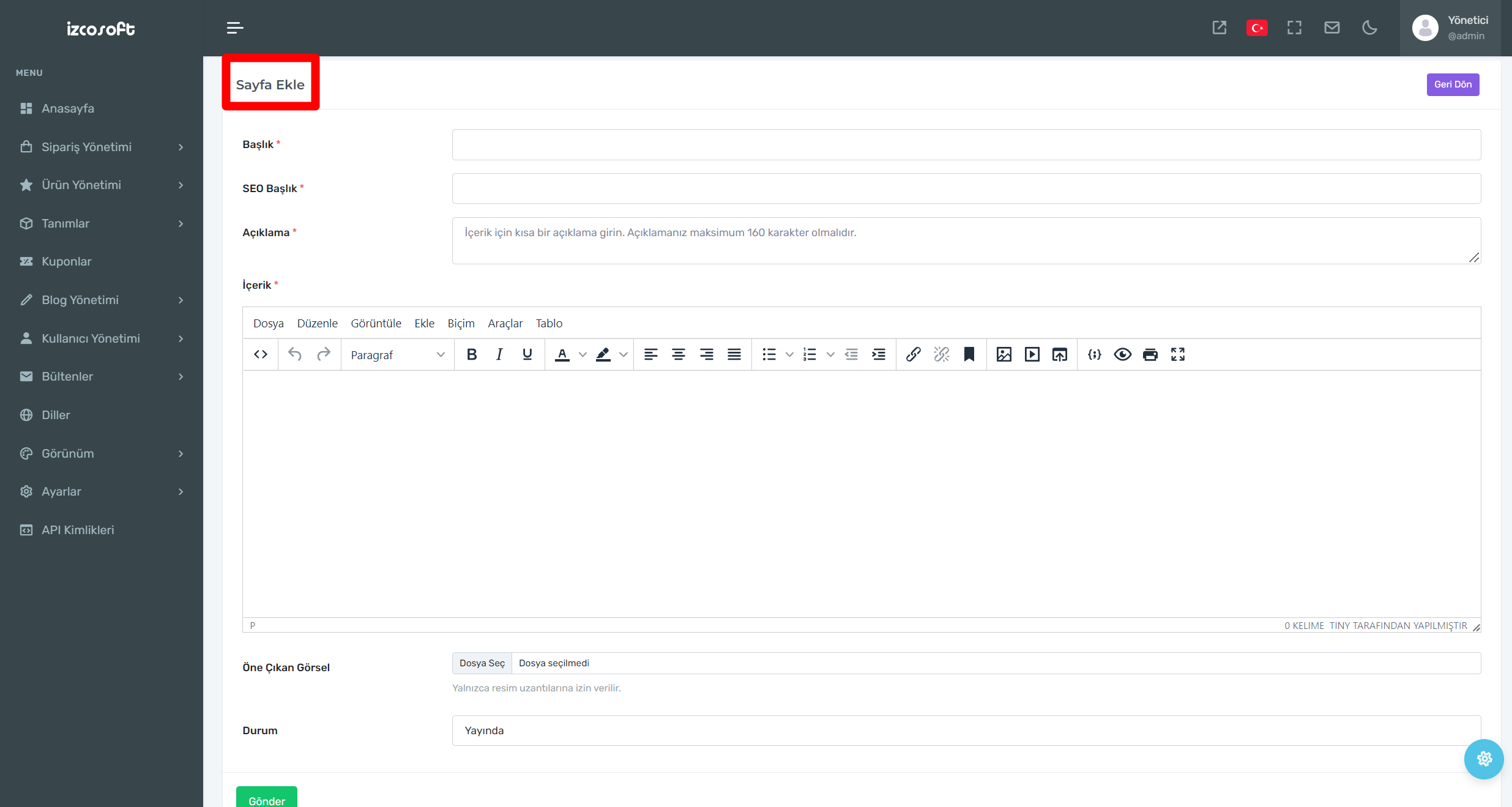 E-Ticaret sayfanıza eklemek istediğiniz yazıları örneğin hakkımızda yazısı gibi içerikleri ekleyebilirsiniz.