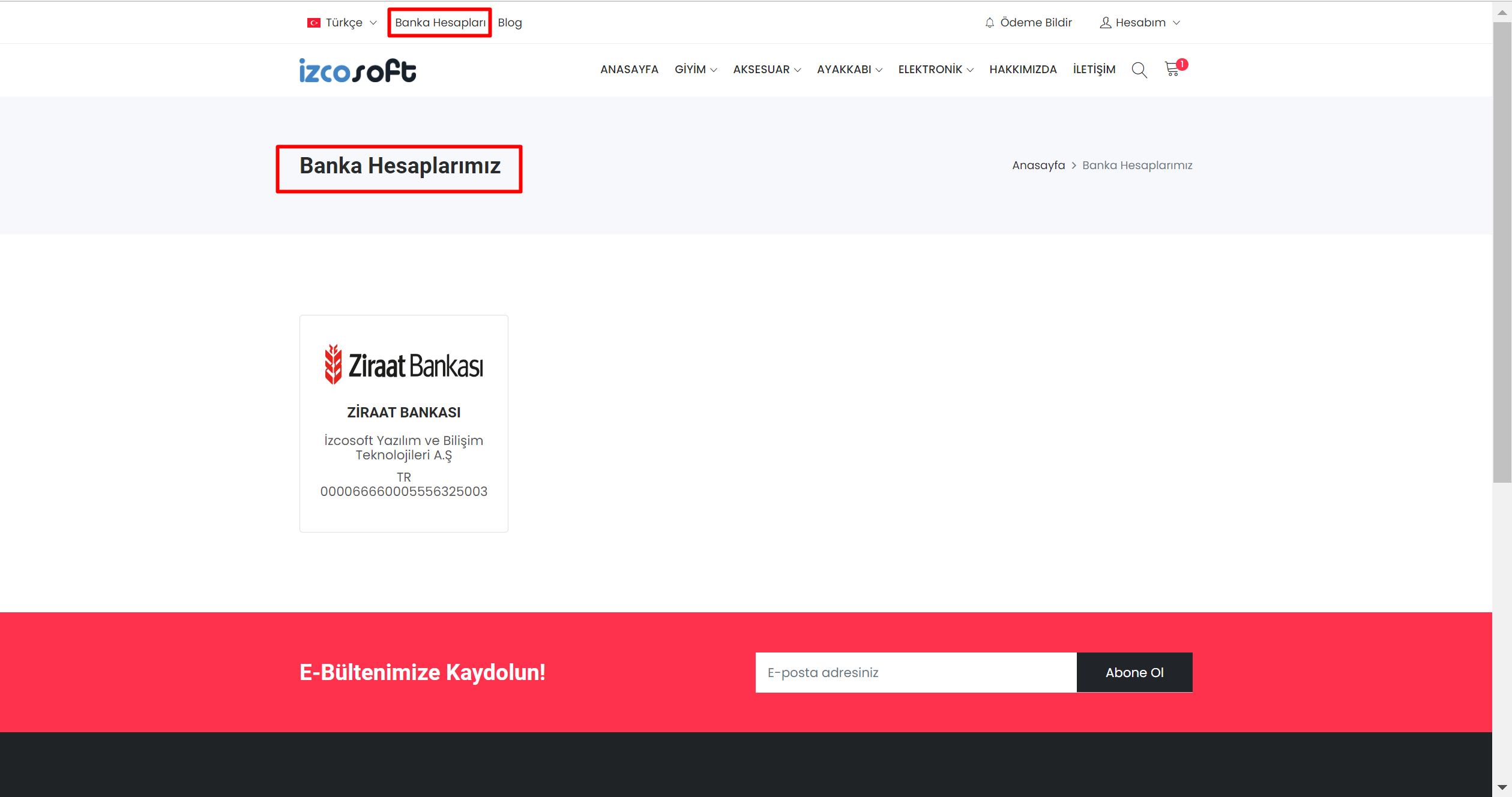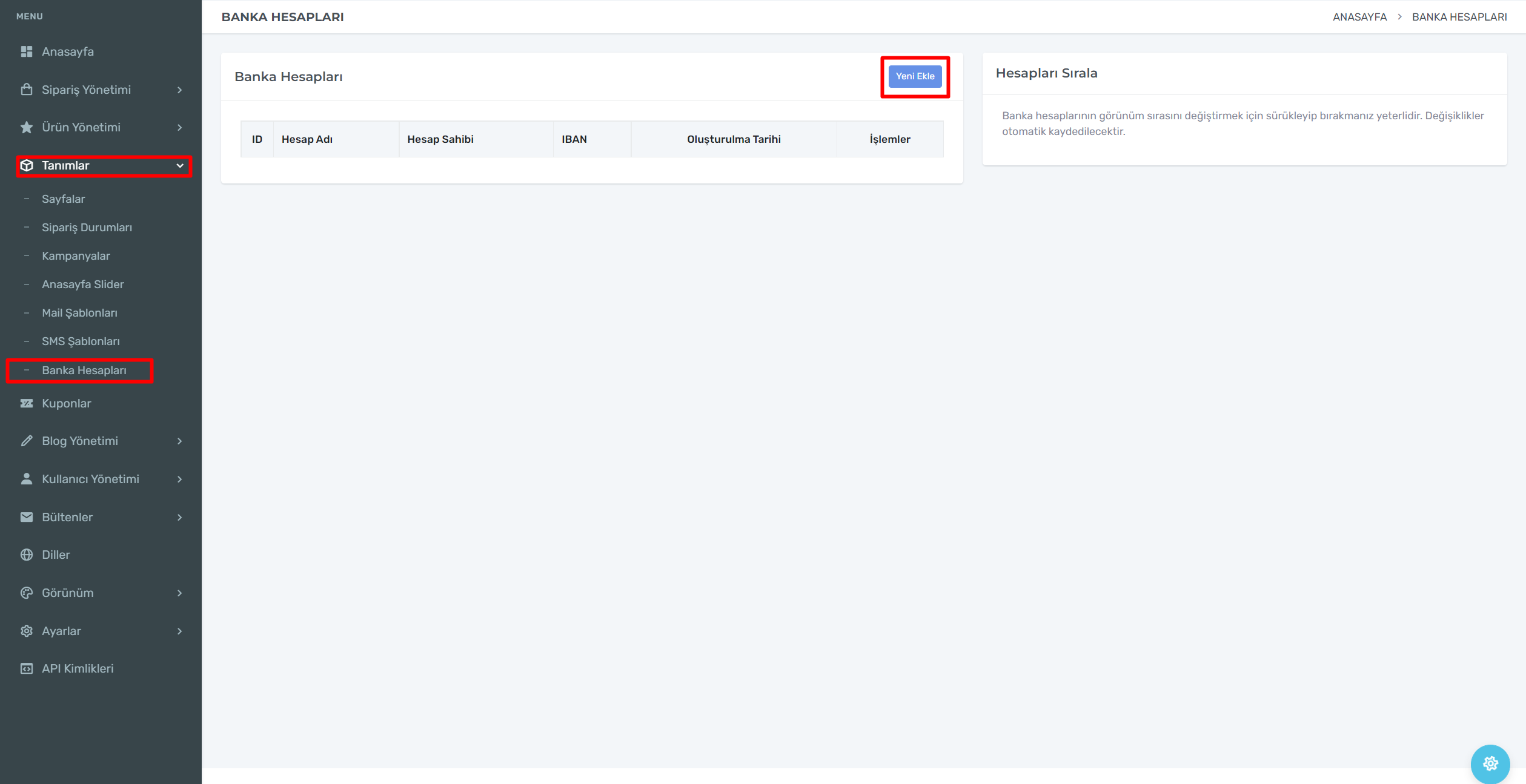 E-Ticaret sayfanızın sol üst köşesinde Banka Hesapları yazan kısımda bilgileriniz yer almaktadır.