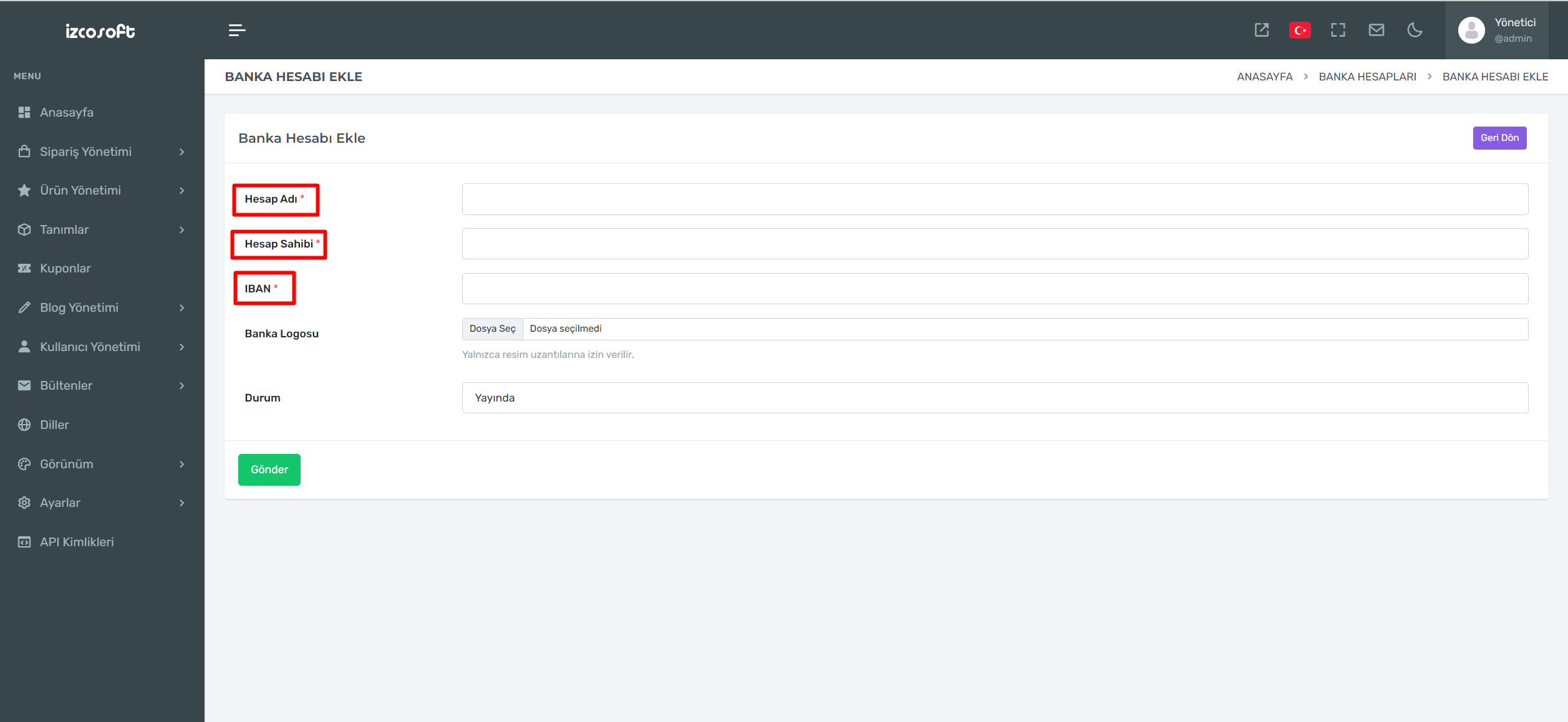 Kutucuk içine alınmış yerleri eksiksiz bir şekilde doldurduktan sonra Banka Logosu yazan kısma bankanızın logosunu ekleyebilirsiniz.